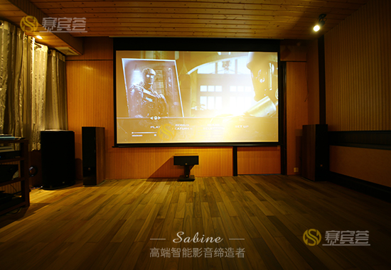 影音室在别墅的第五层,由(长7.3m*宽4.6m*高2.8m)独立室所打造,格局地正方圆,为影音室调试提供方便