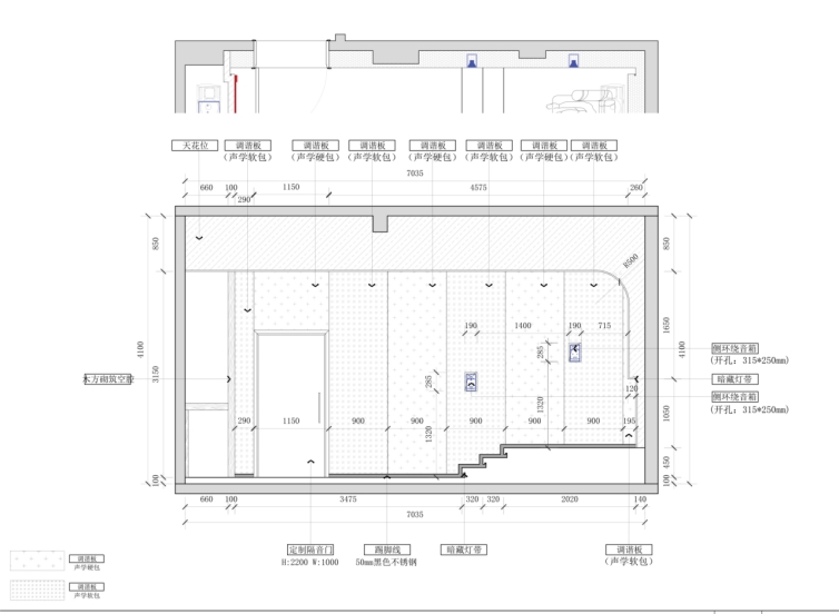 构建影音室之前,需要先了解这个空间的大概信息:本案利用地下负一层一个独立空间打造,这一空间长7.03米,宽4.94米,高4.1米,总体面积34.7㎡。长方形的原始毛坯结构,空间较为封闭,没有窗口,很好地具备了打造影音室的先天条件,较大程度地减少了外界噪音干扰。不算太大的空间,投入资金却有75万之多,称得上是重金打造,足以体现业主对于自家影音室的重视程度。